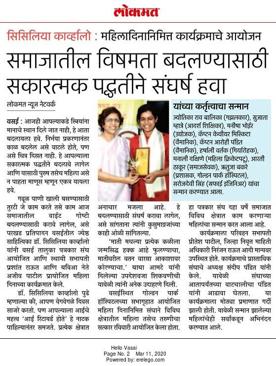 वसई तालुका पत्रकार संघाच्या स्थापनेपासुनच विविध क्षेत्रामध्ये